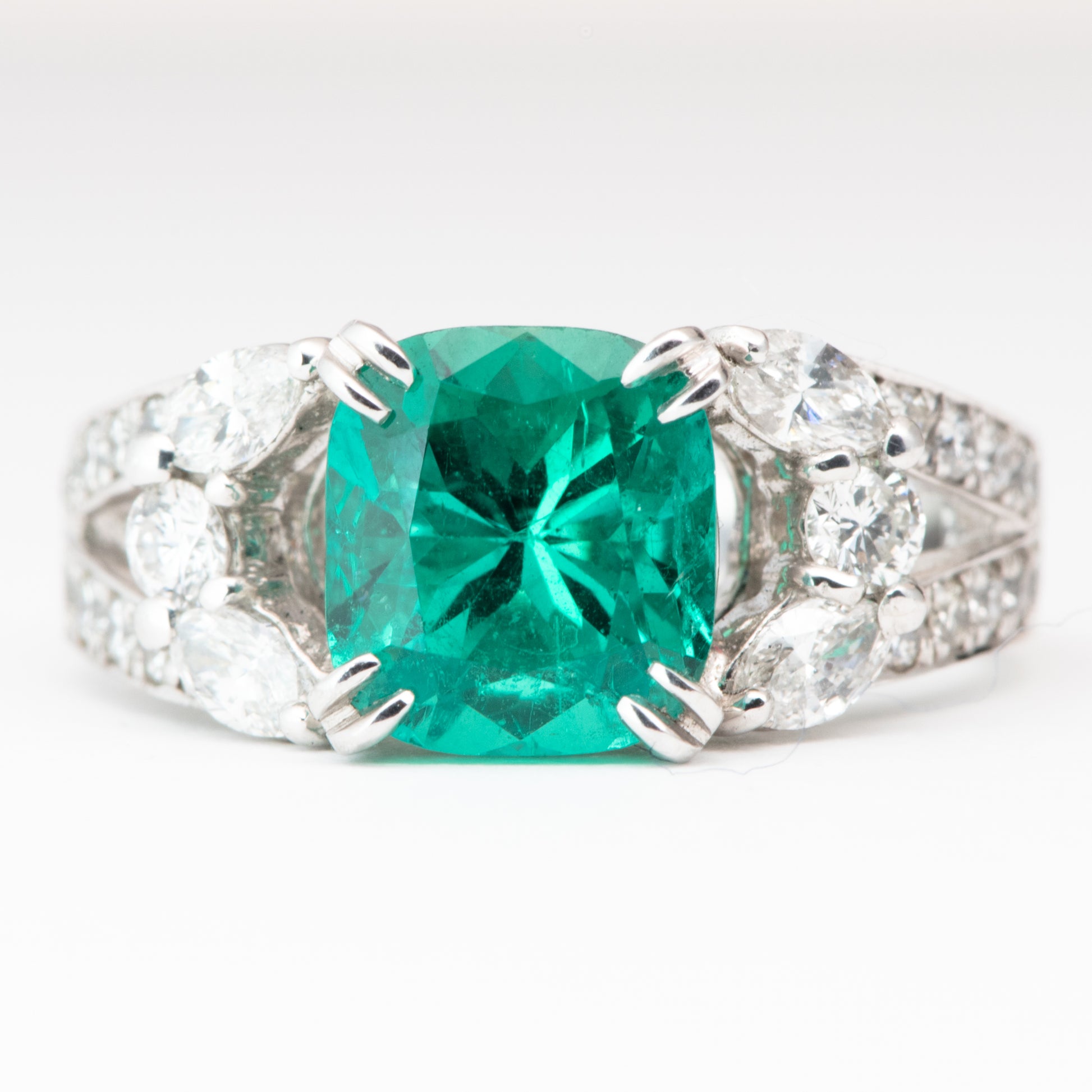 2ct コロンビア産エメラルドプラチナリング E2.20ct D:1.13ct Pt900