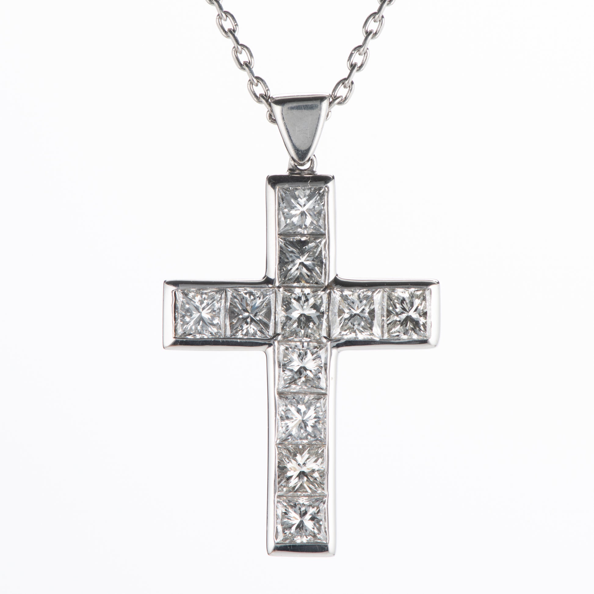 0.3ctアップのプリンセスカットのダイヤモンドを使用したクロスペンダント