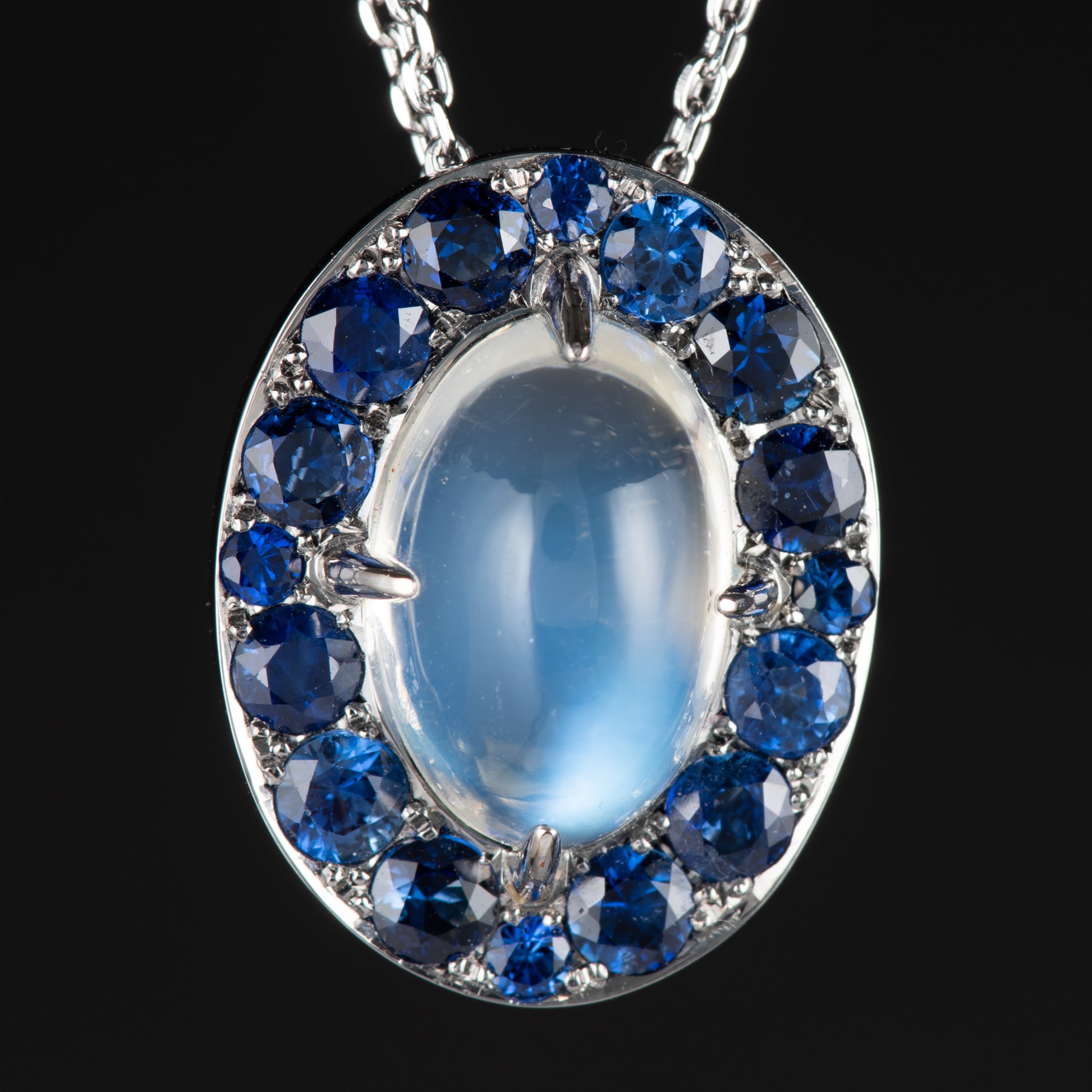 6ctのブルームーンストーン、周りにはブルーサファイアのペンダント