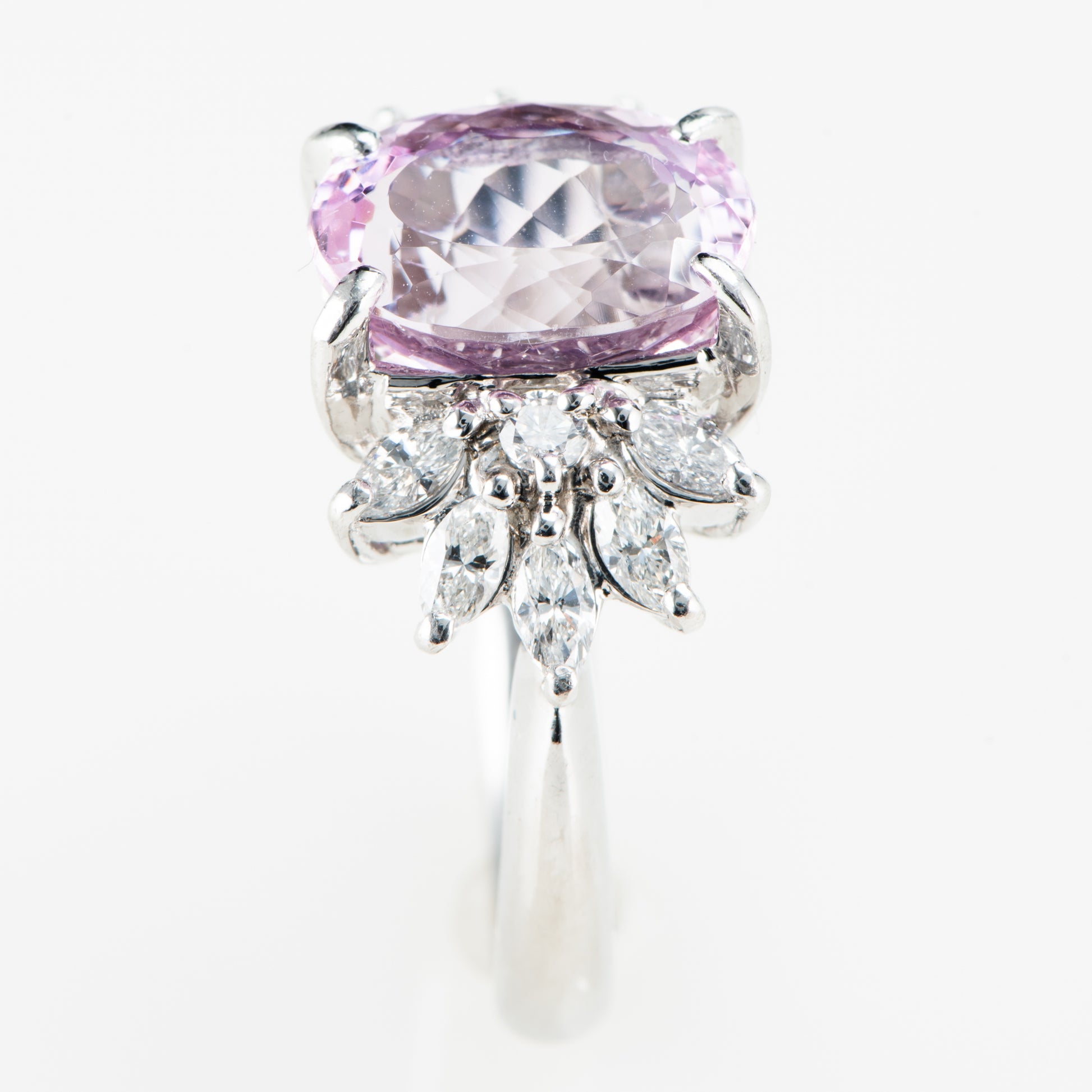 繊細なピンクに心奪われる、4.35カラットのピンクトルマリンをセンターに据えた華麗なリング。