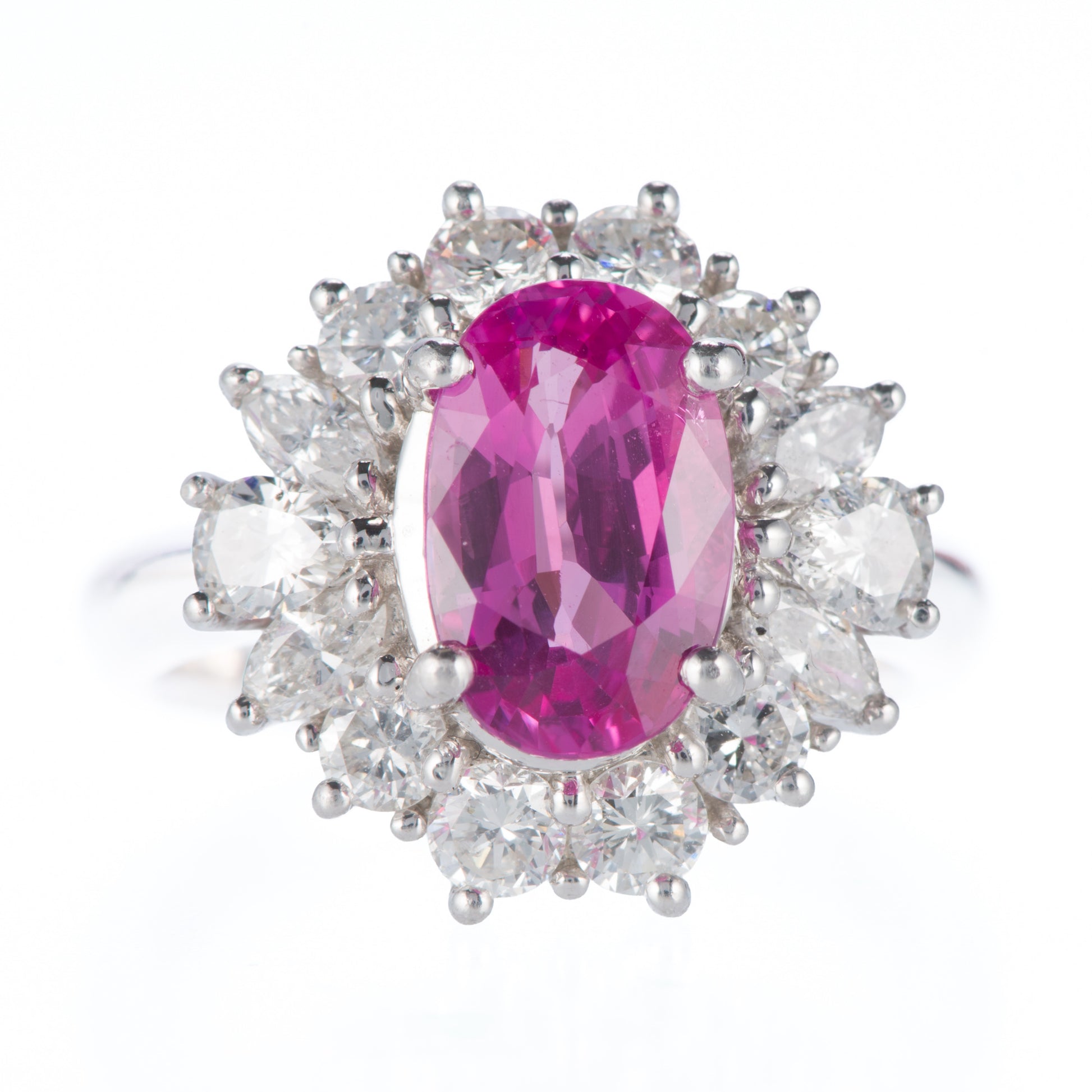 ハローリング ピンクサファイアxダイヤモンド プラチナリング PS: 3.29 ct D: 1.43ct Pt900 GIA