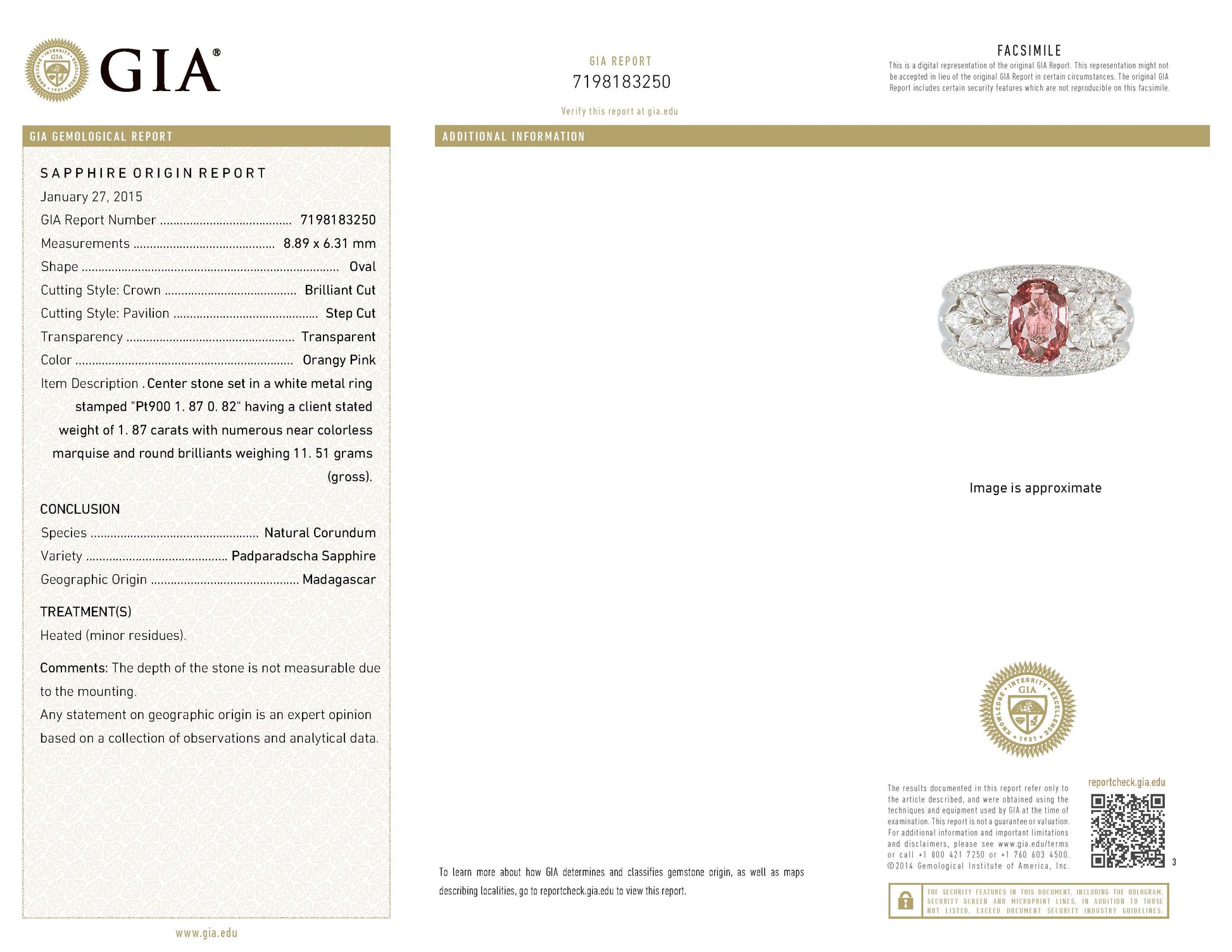 1.87ct パパラチアサファイアxダイヤモンドプラチナ製リング(1.87ct D0.82ct Pt900)GIA