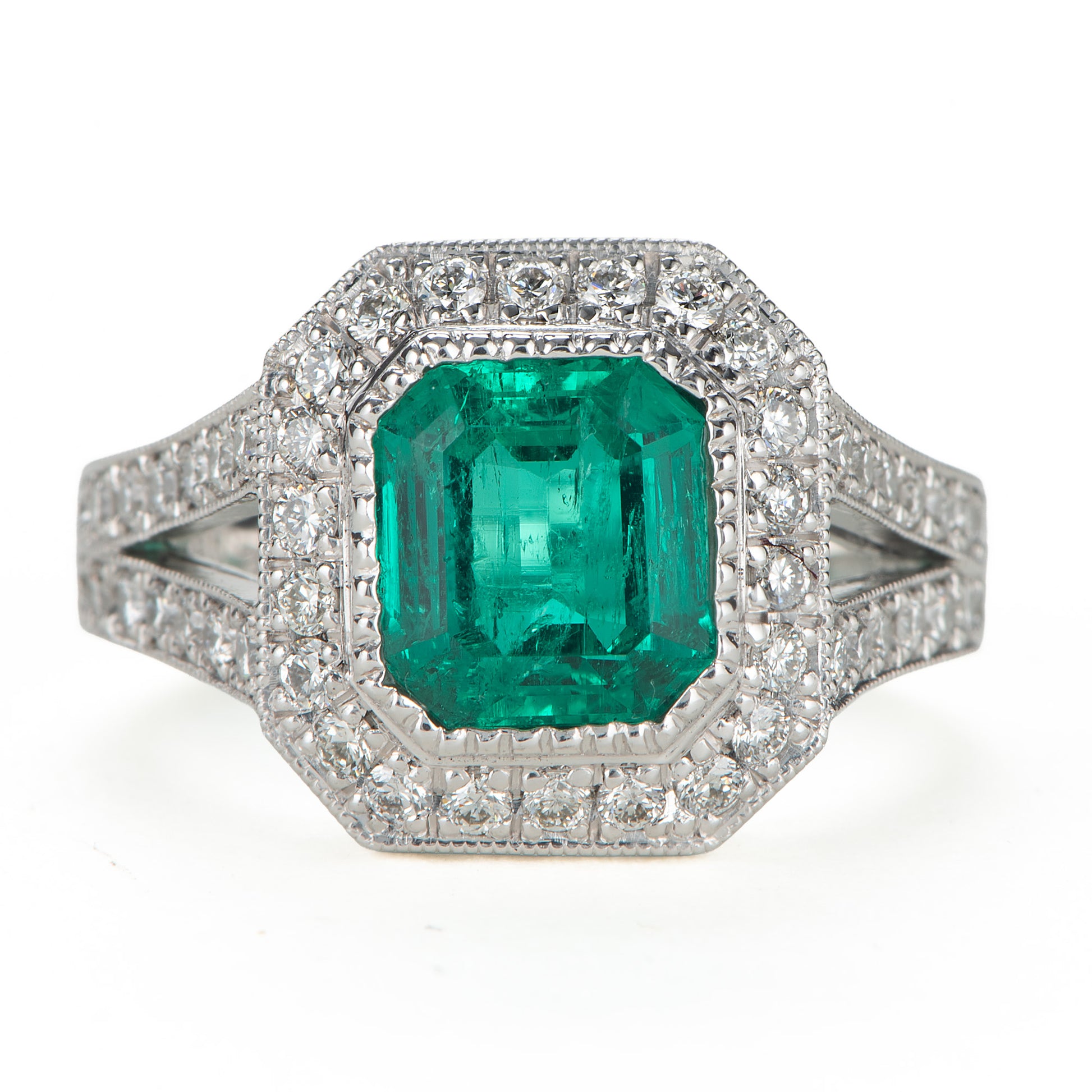 2ct コロンビア産エメラルドプラチナリング E2.08ct D:0.65ct Pt900 GIA