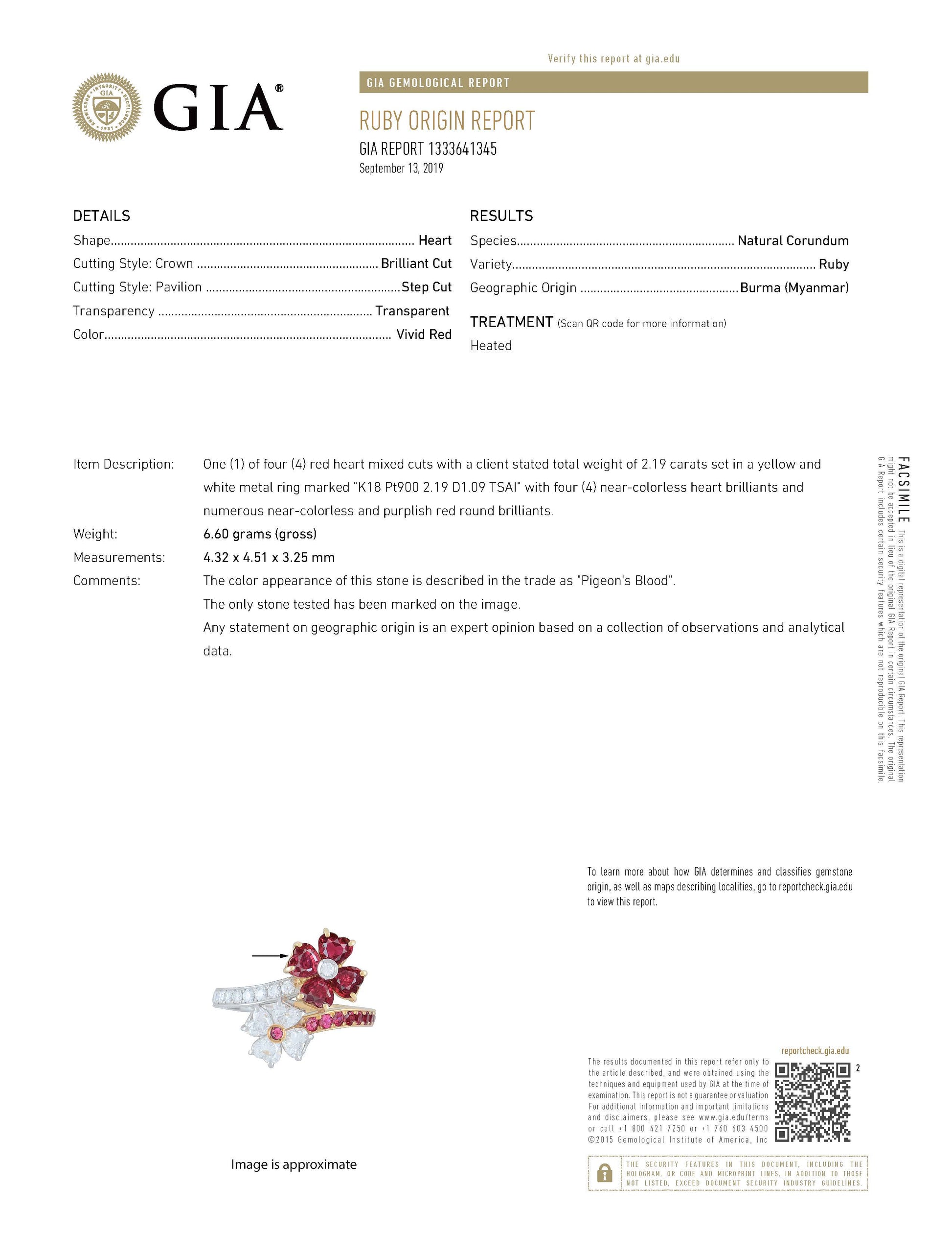| レポート種類 | GIA ルビーオリジンレポート | ||