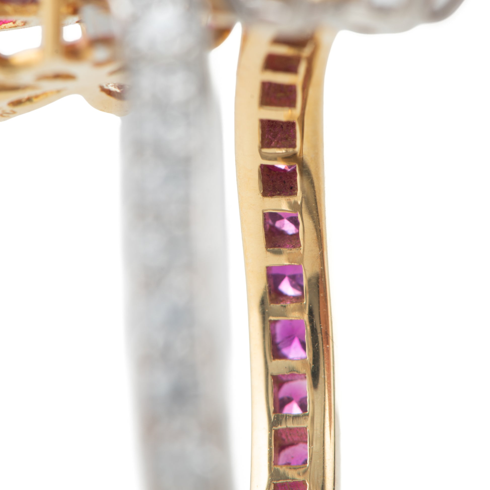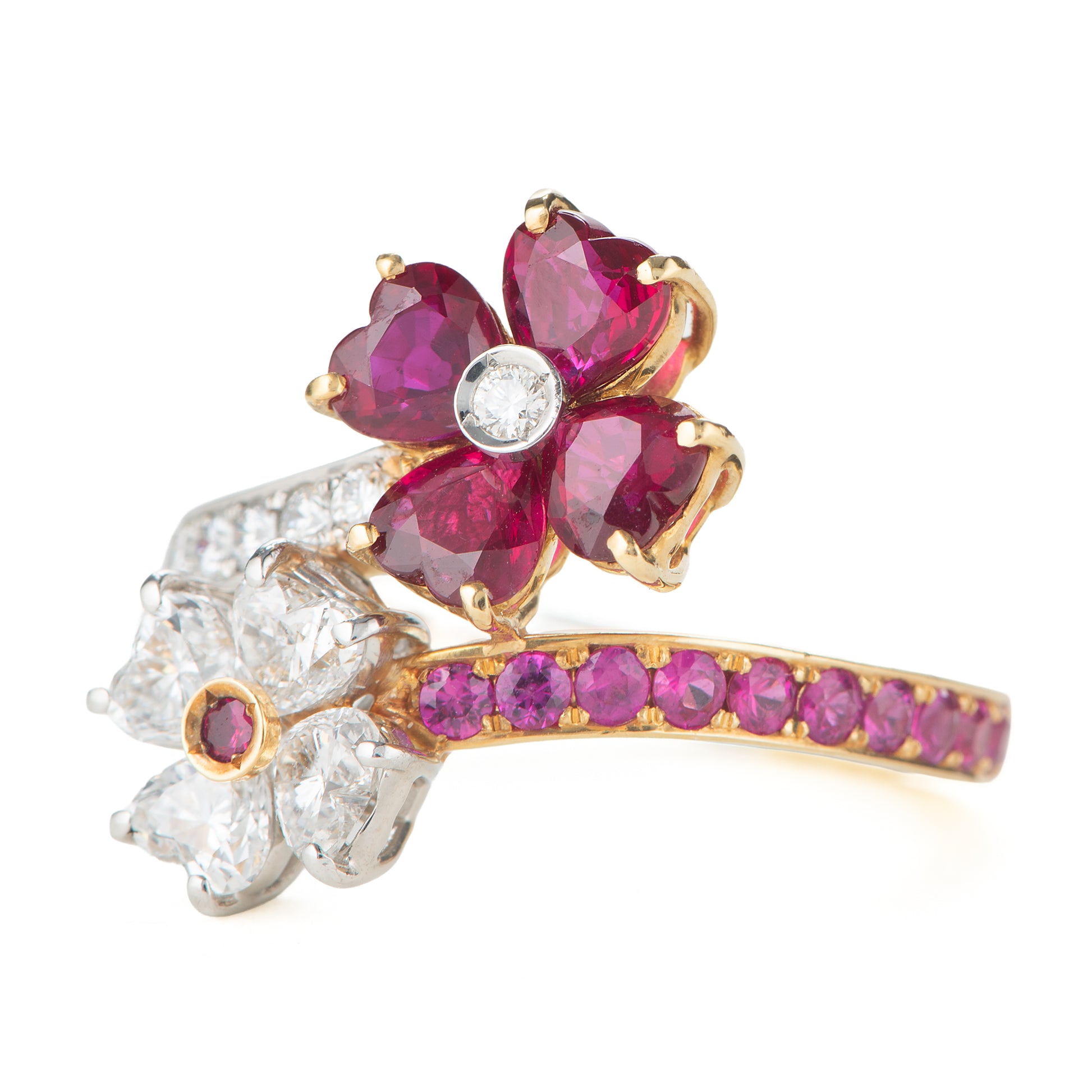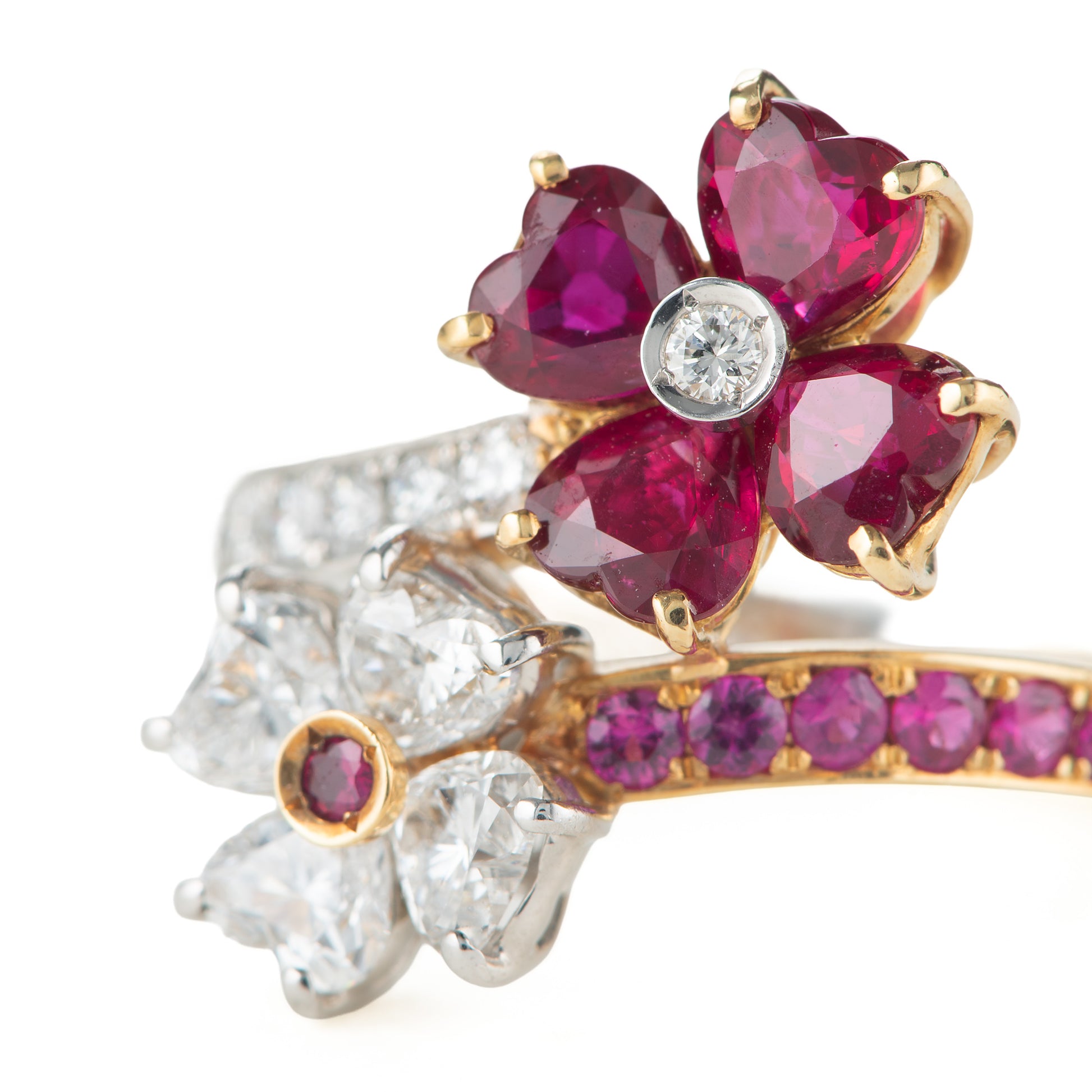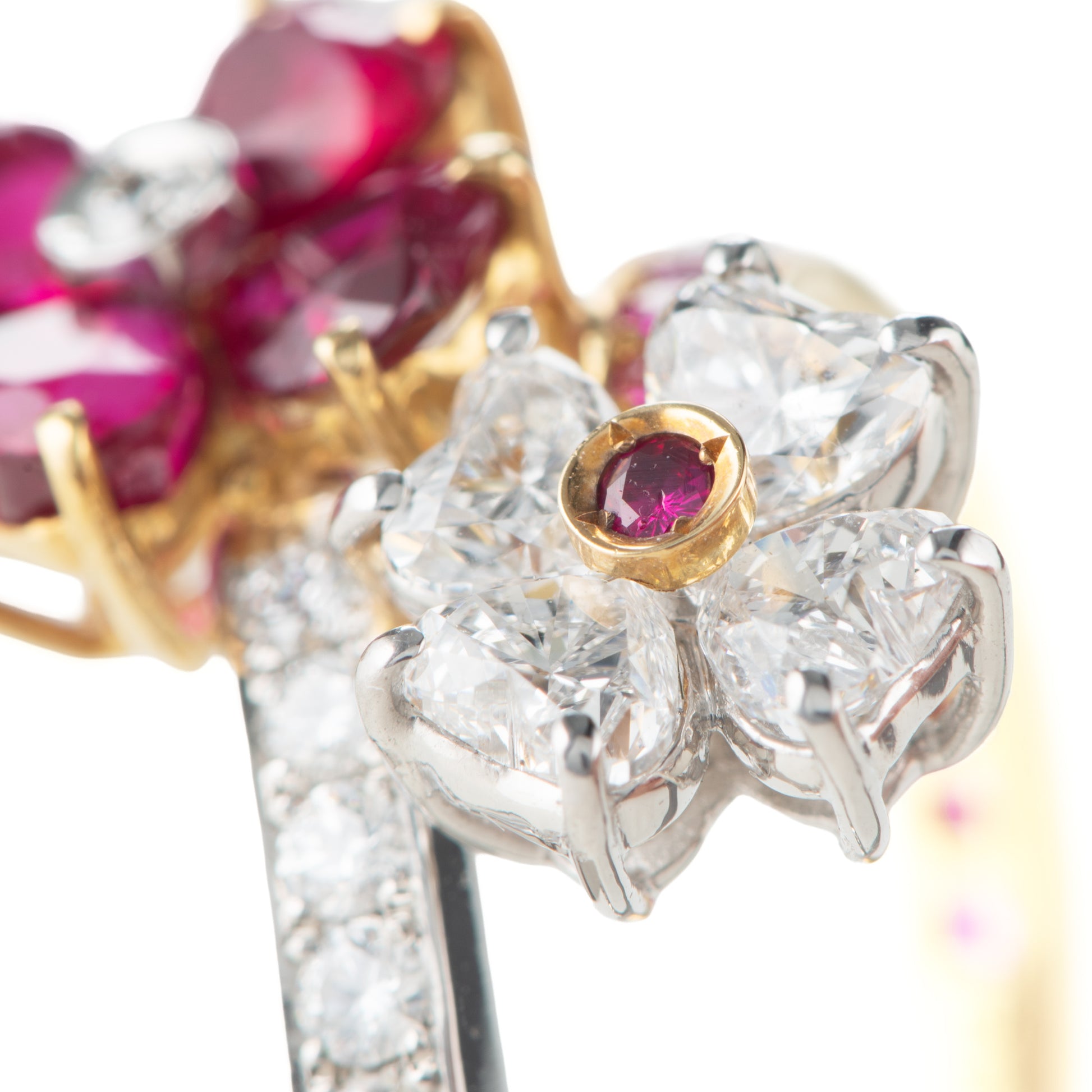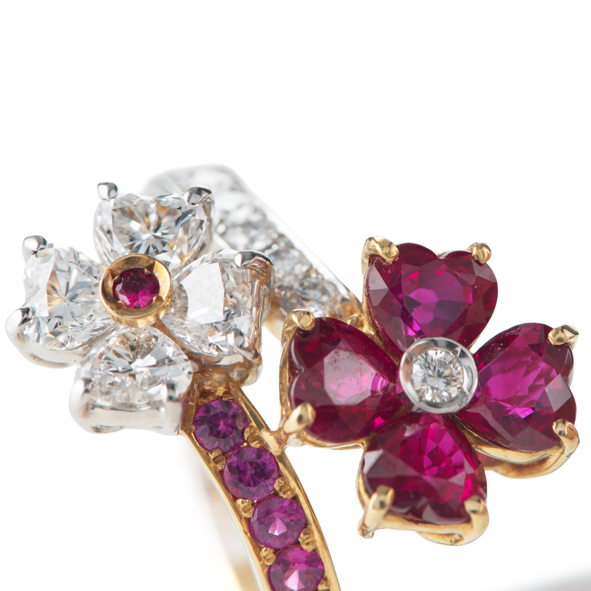 ルビーとダイヤモンドの花が交わるデザイン