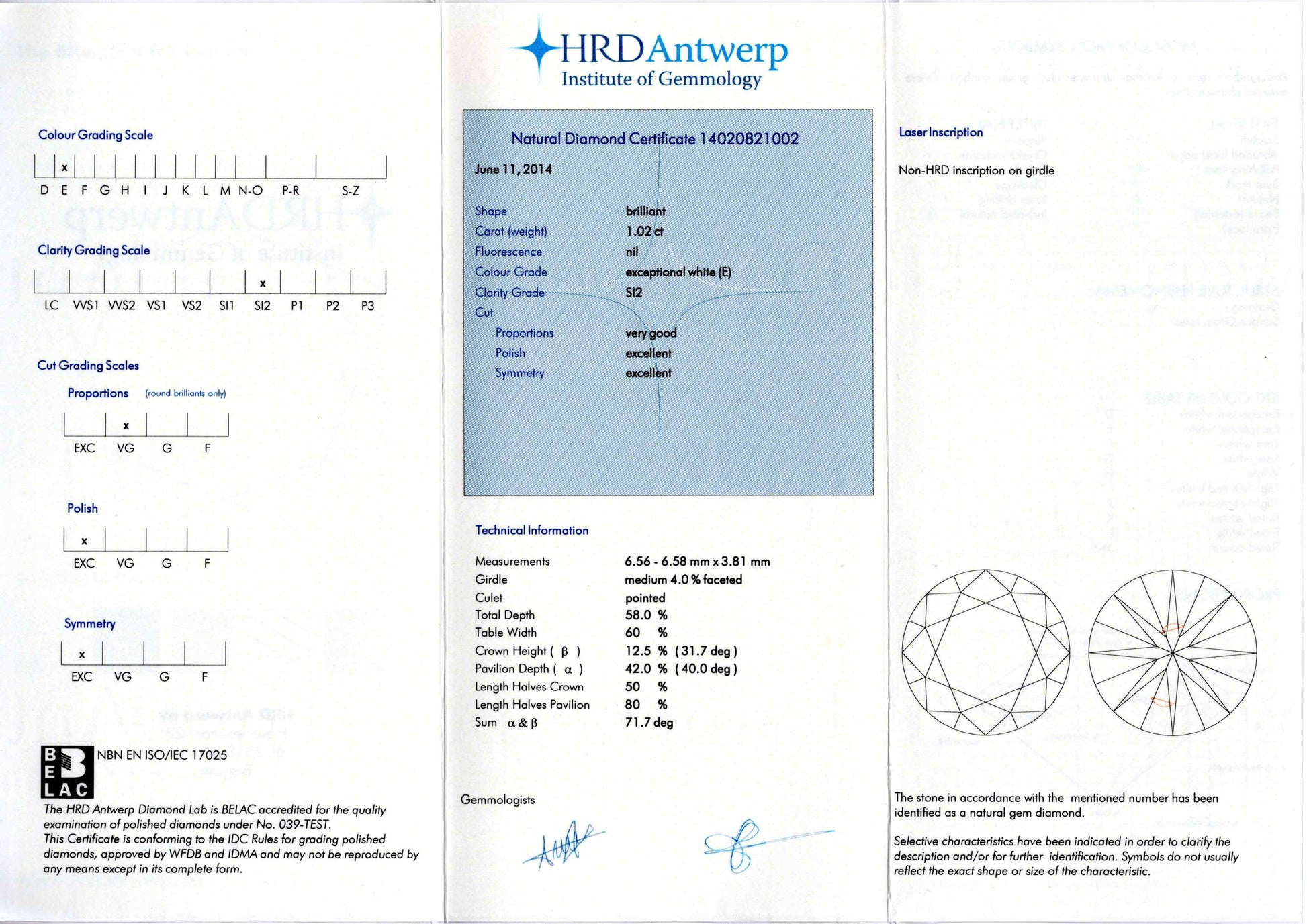| レポート種類 | HRDダイヤモンドグレーディングレポート | ||
