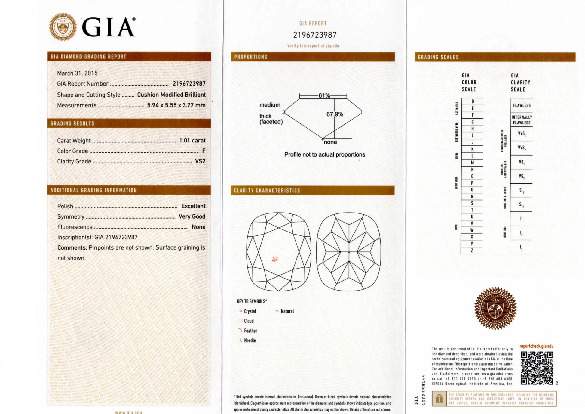 1.01ct Fカラー VS2 ダイヤモンドペンダント プラチナ950/850製(1.01 F VS2 0.23ctPt950/Pt850 )GIA