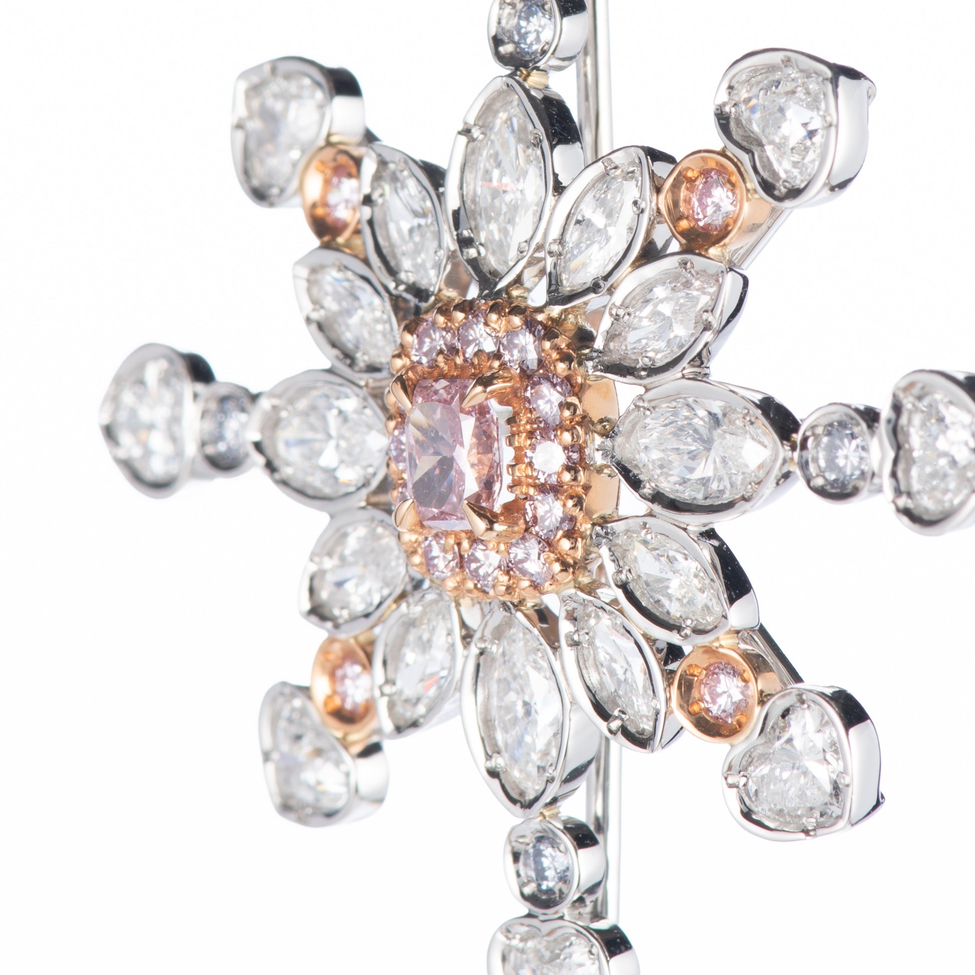 センターのピンクダイヤモンドの周りを解き囲むようにアーガイルピンクのメレをセット。