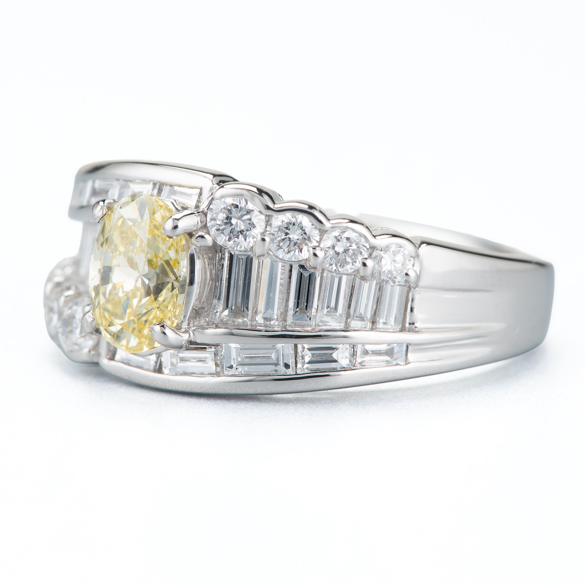 ファンシーイエローダイヤモンド プラチナリング D: 0.79ct D: 1.08ct Fancy Yellow SI1 Pt900 中宝研 CGL