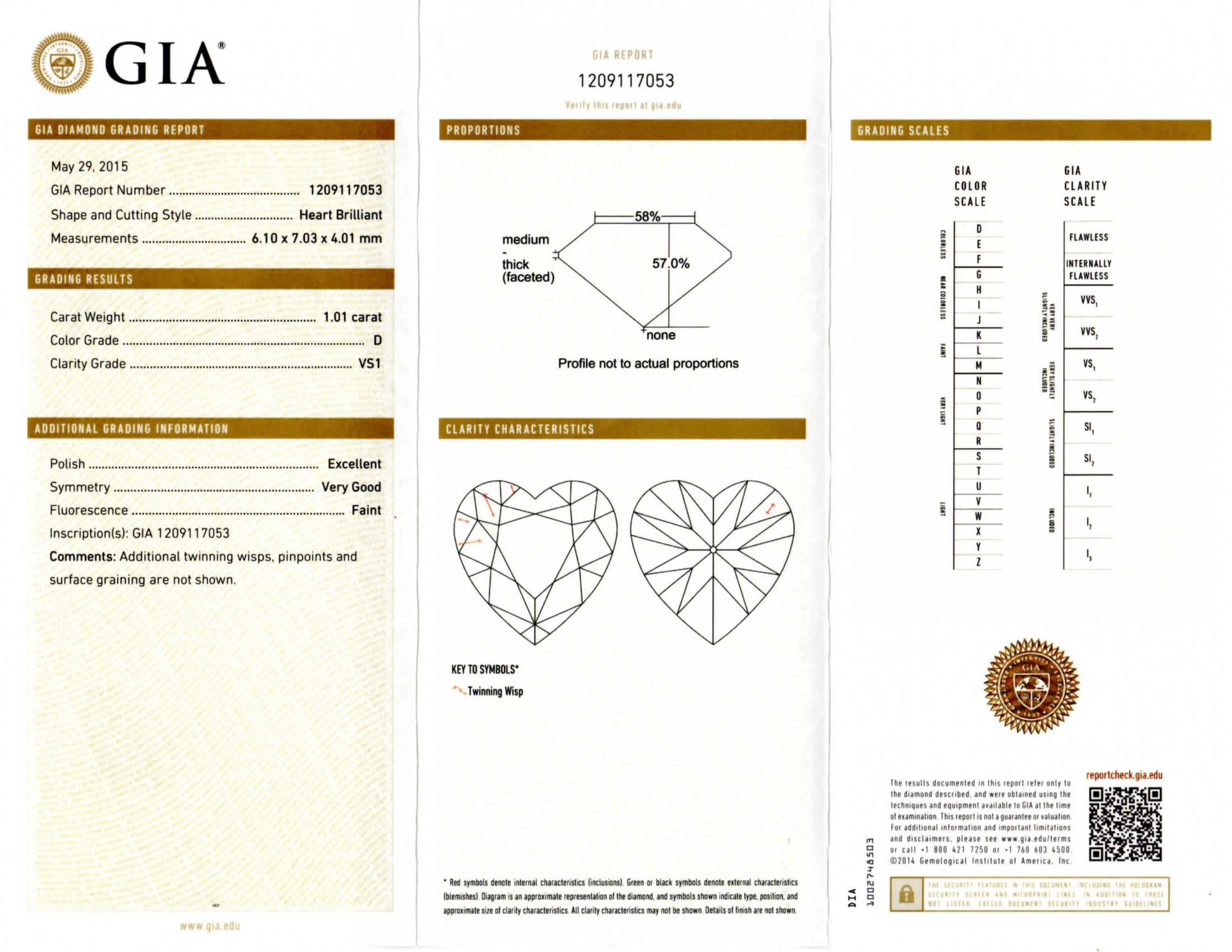 1ct ハートシェイプダイヤモンド取り巻きプラチナリング(1.01ct D VS1 1.01/1.03 GIA)