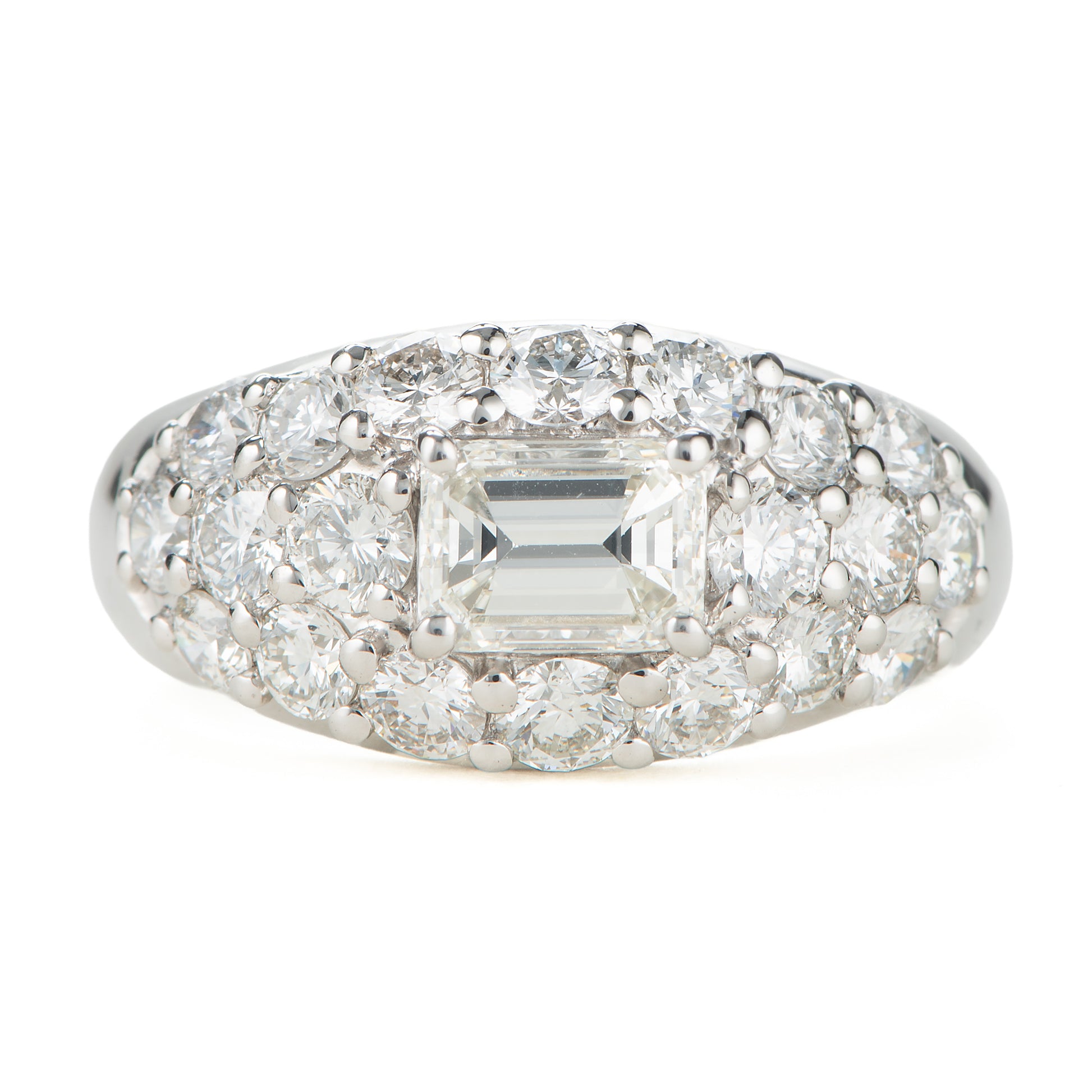 合計2.42ct エメラルドカットダイヤモンド パヴェ プラチナリング 2.42twct (D: 0.80ct D: 1.62ct) Pt900 GIA