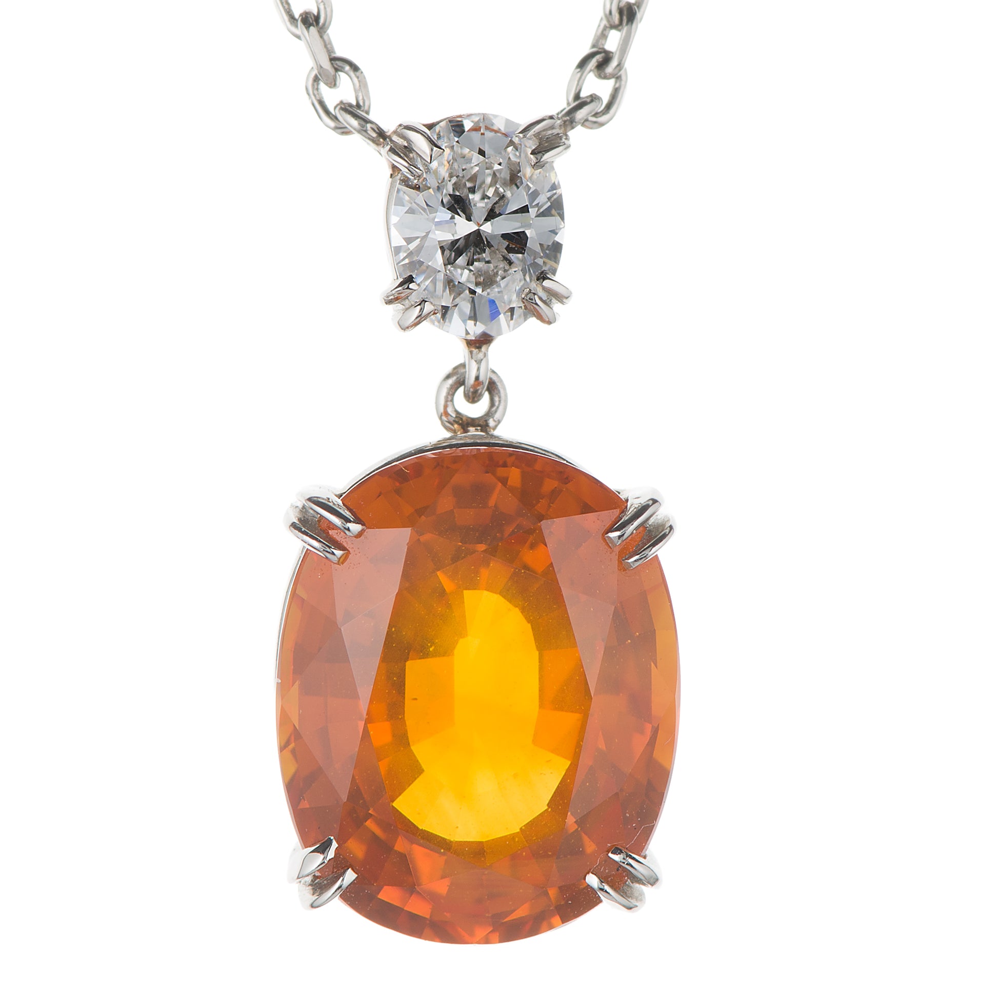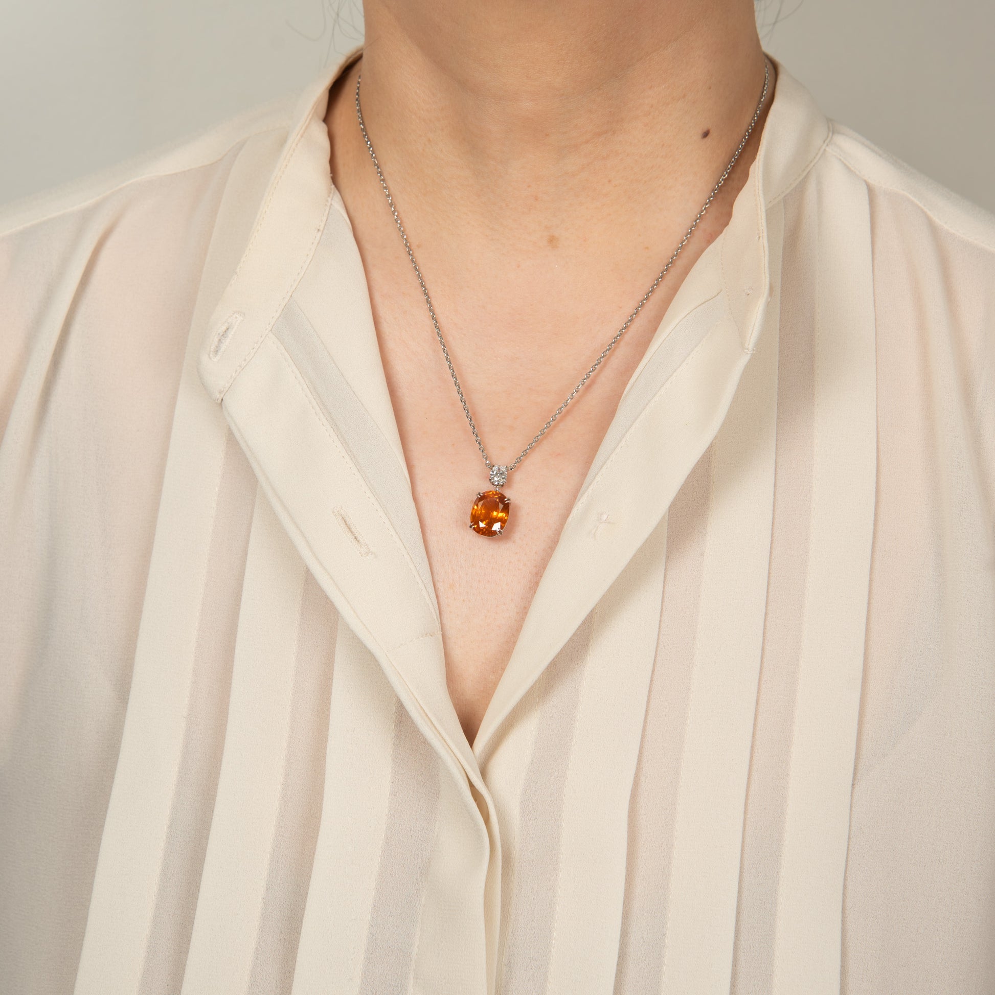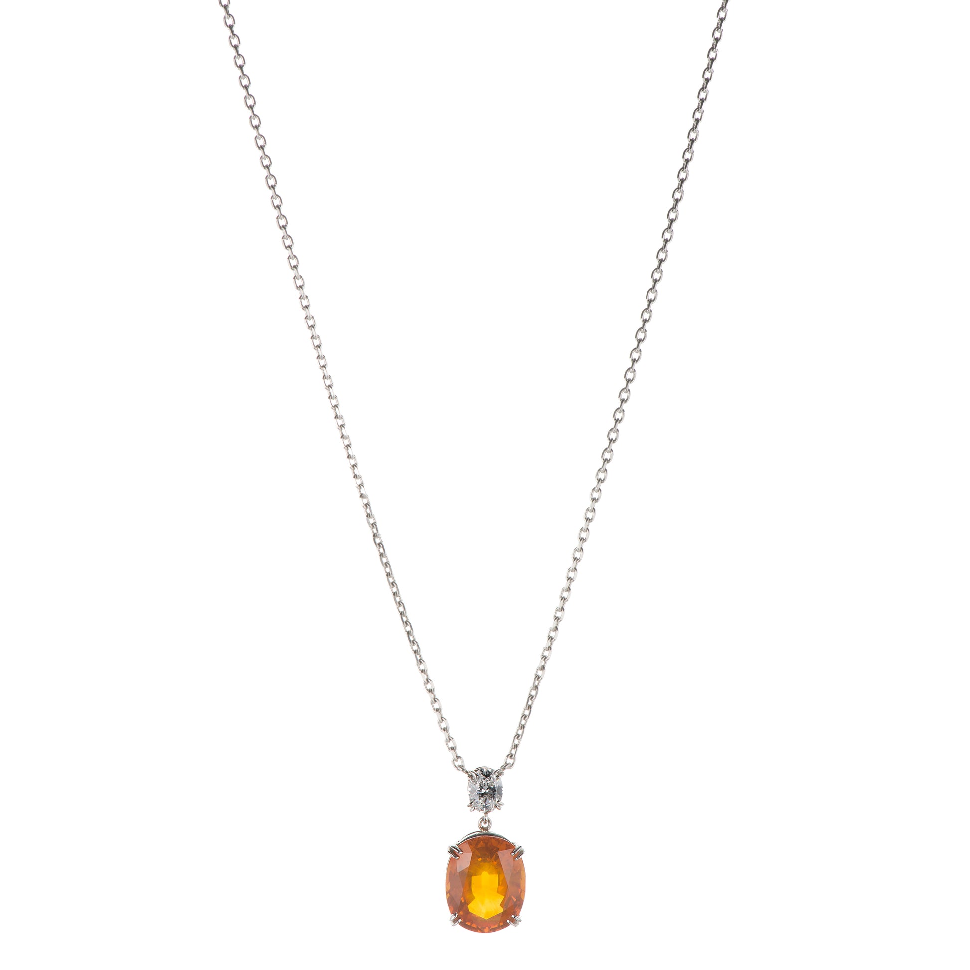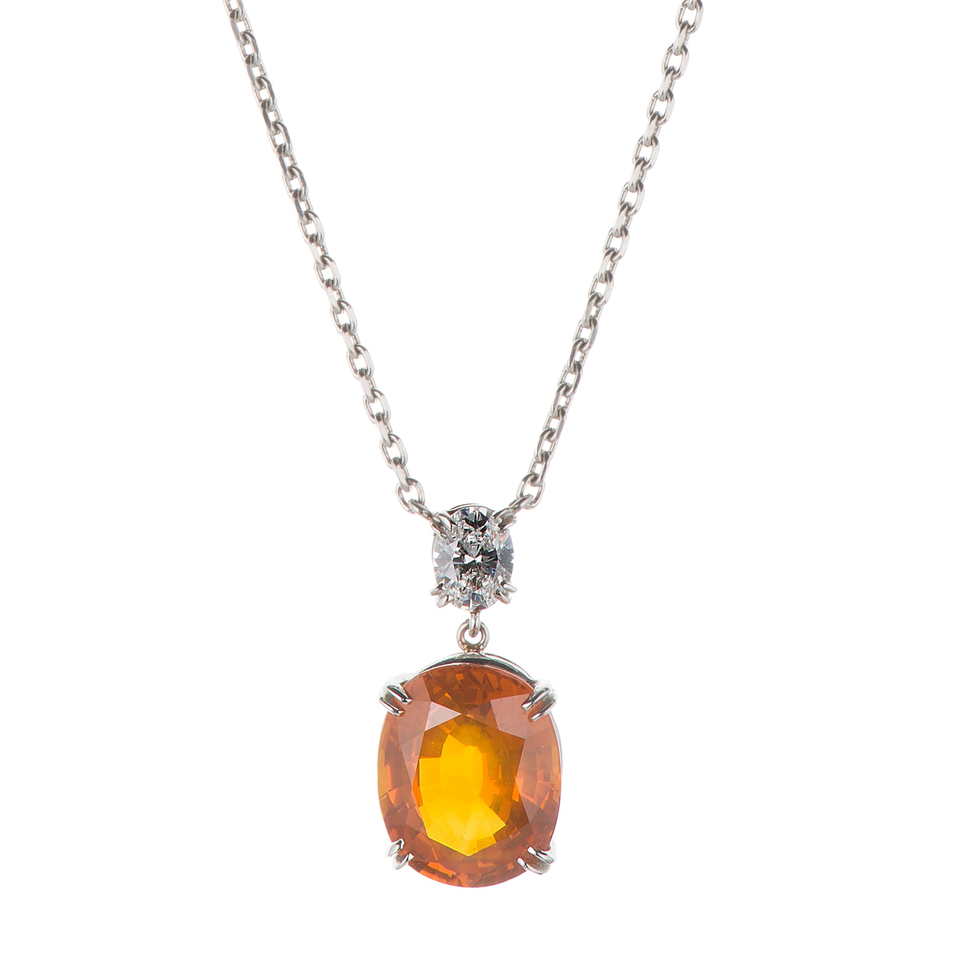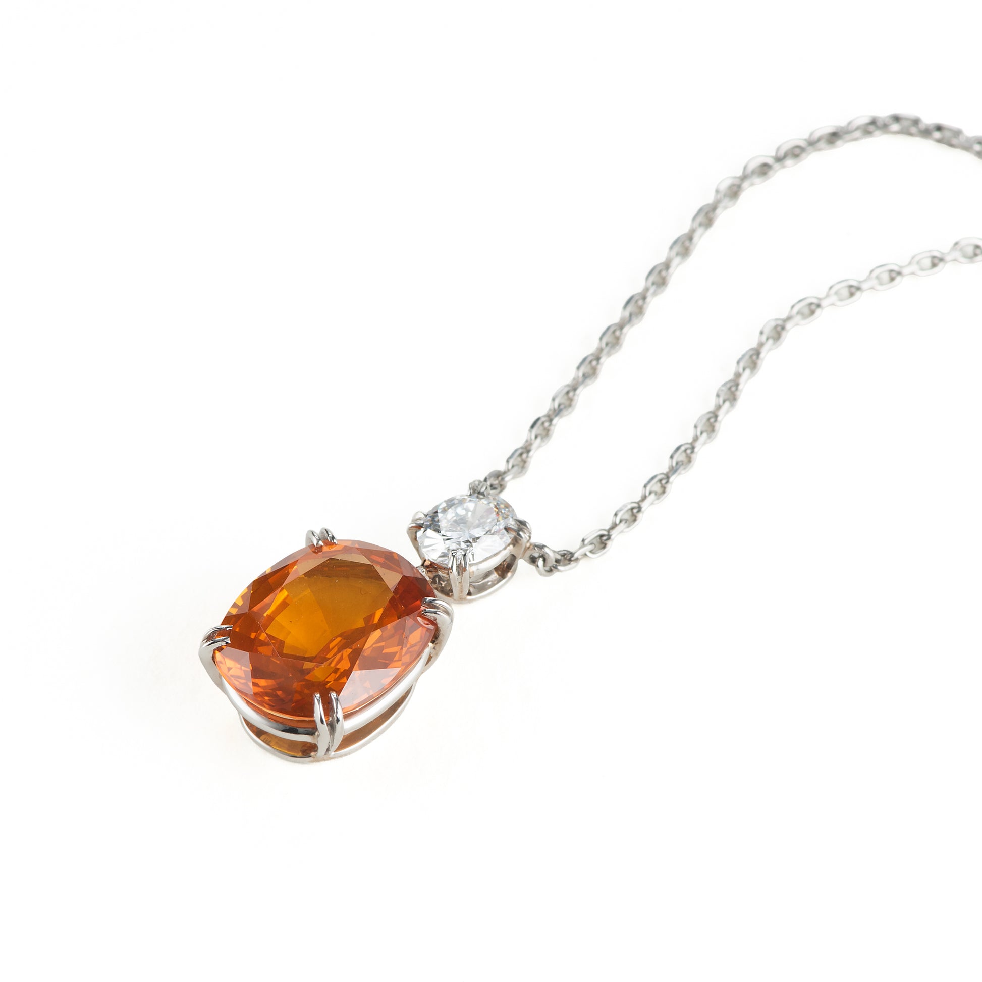 6ct オレンジサファイアxダイヤモンド プラチナ製ペンダント(OS:6.82ct D:0.41 Pt900/K18)