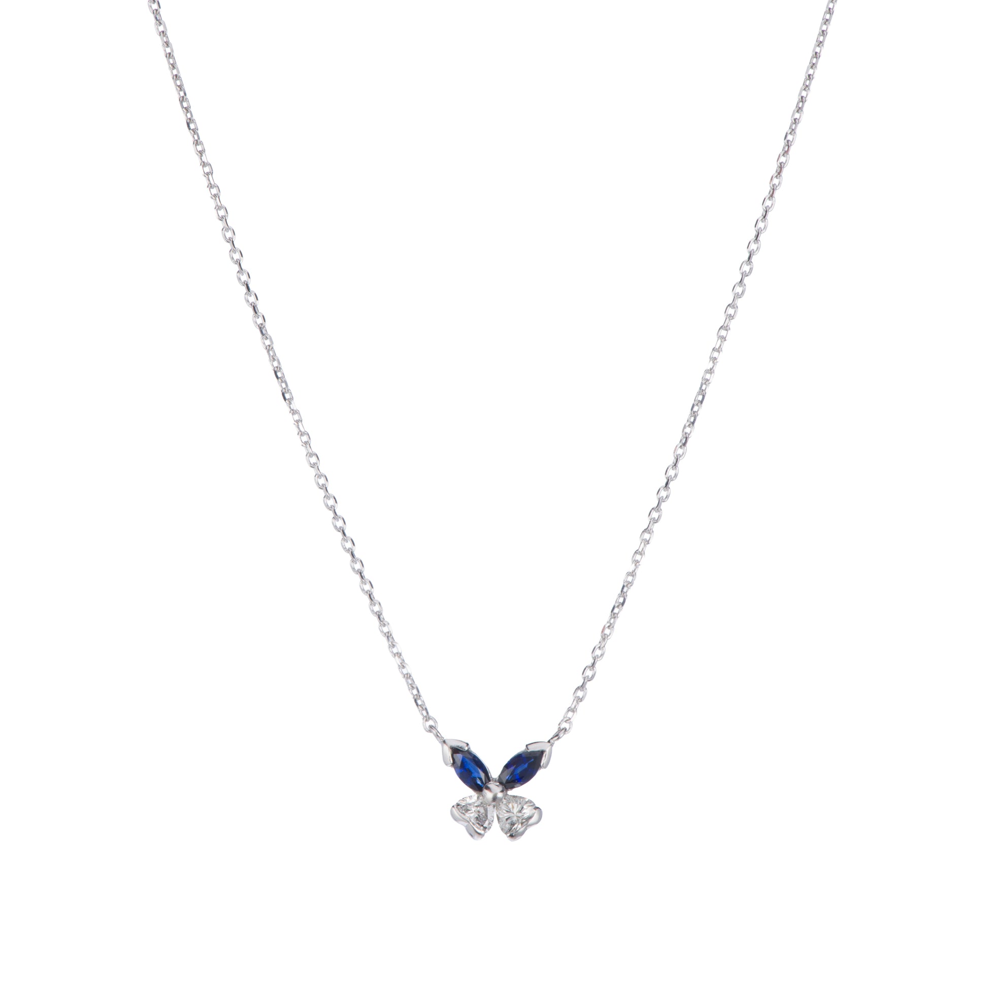 バタフライ サファイアxダイヤモンド ホワイトゴールド製ペンダントネックレス (S: 0.27ct D: 0.24ct K18WG)