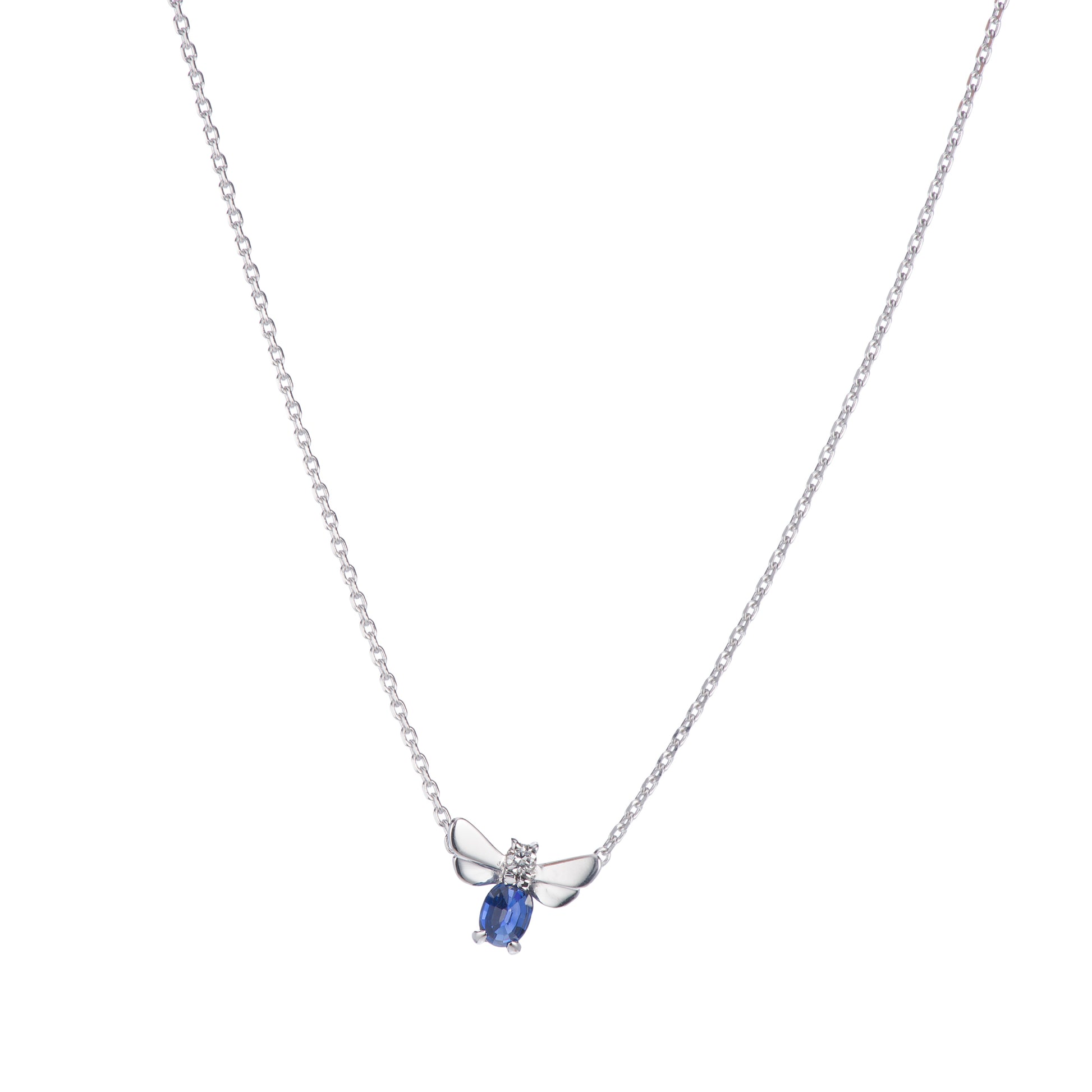 ビー サファイアxダイヤモンド ホワイトゴールド製ペンダントネックレス (S: 0.37ct D: 0.03ct K18WG)