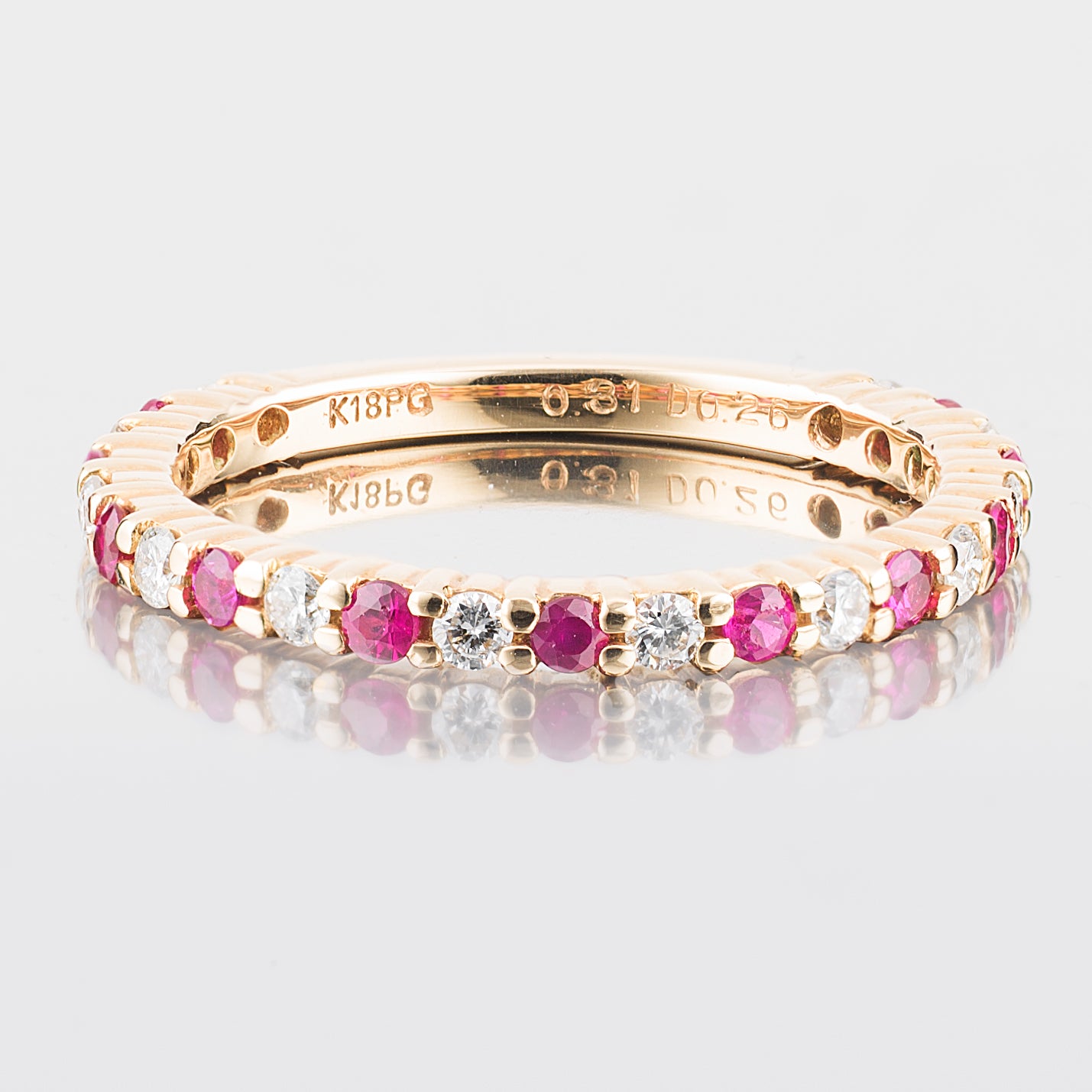1.9mm ルビー×ダイヤモンド イエローゴールド ハーフエタニティリング