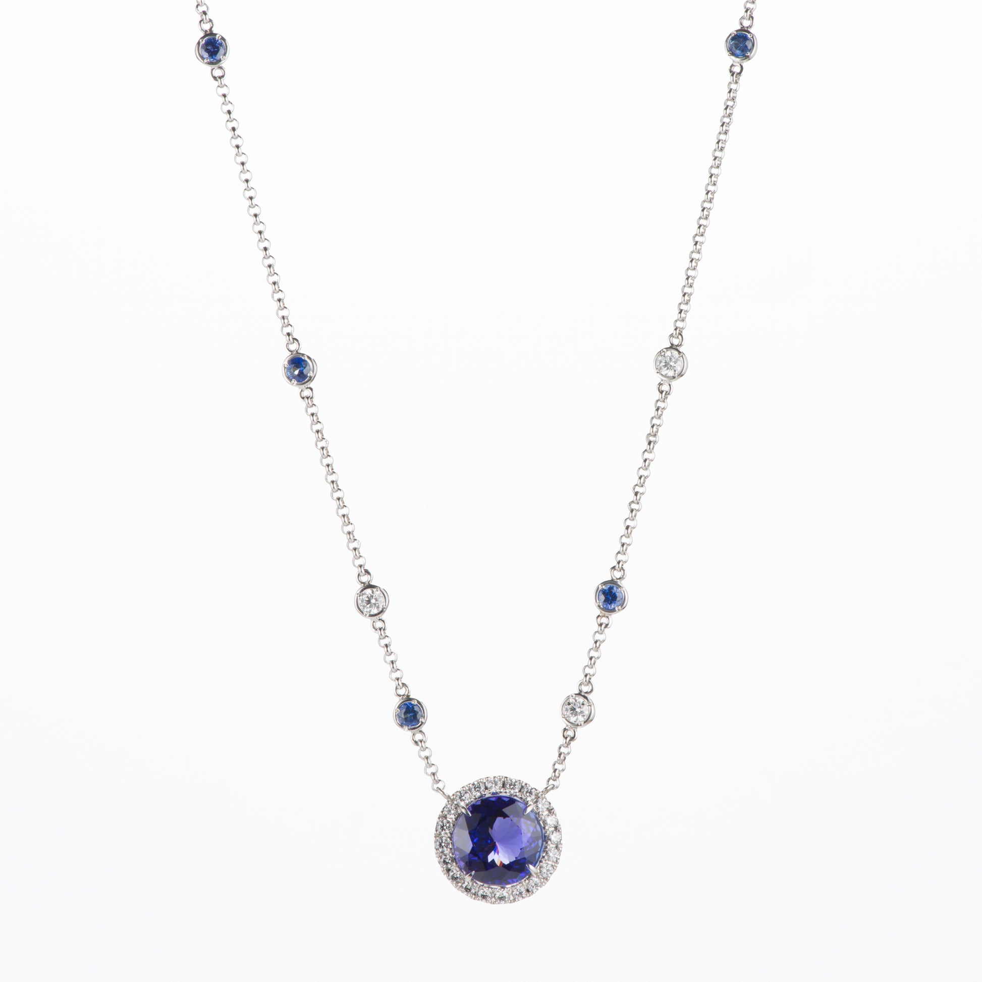 ハロー タンザナイトxサファイアxダイヤモンド プラチナペンダントネックレス (Ta: 5.07ct S: 0.50ct D: 0.60ct Pt950/850)