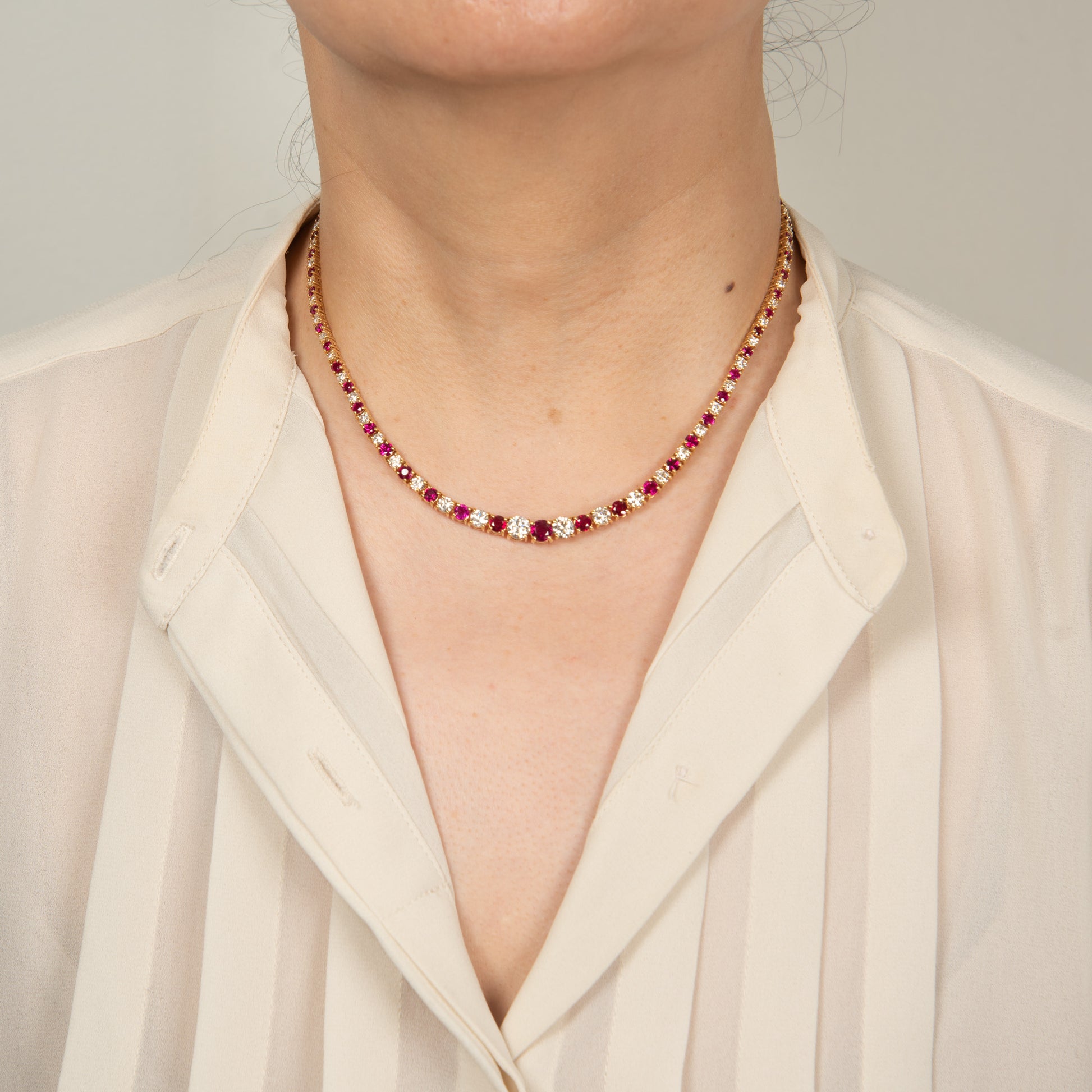 ルビーとダイヤモンドのテニスネックレス