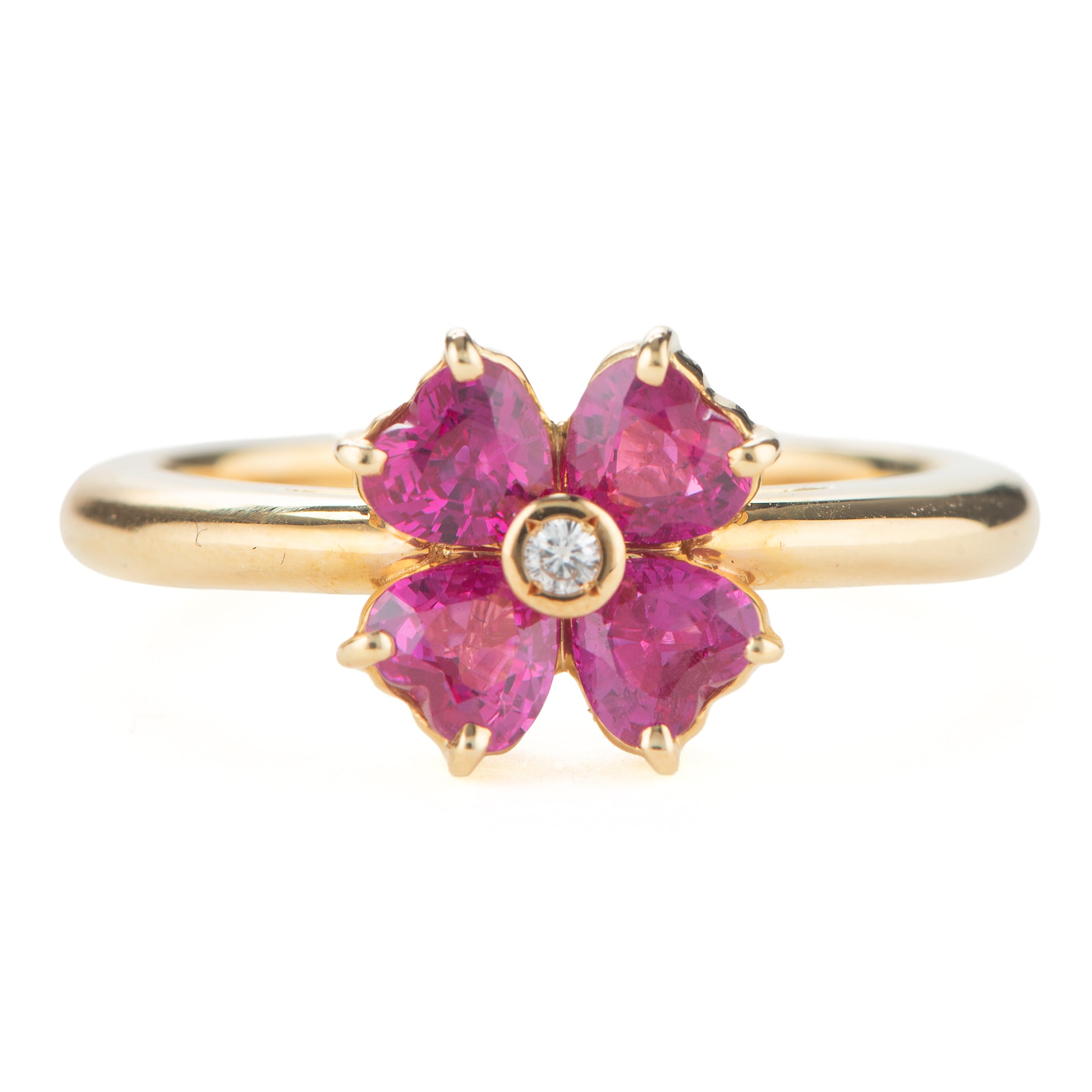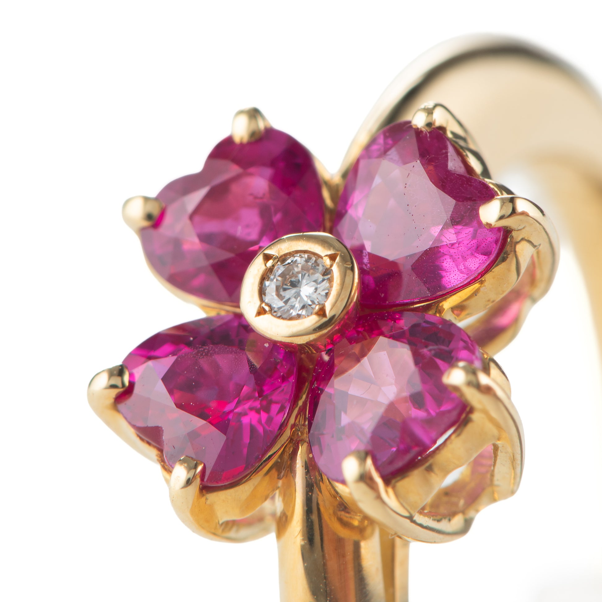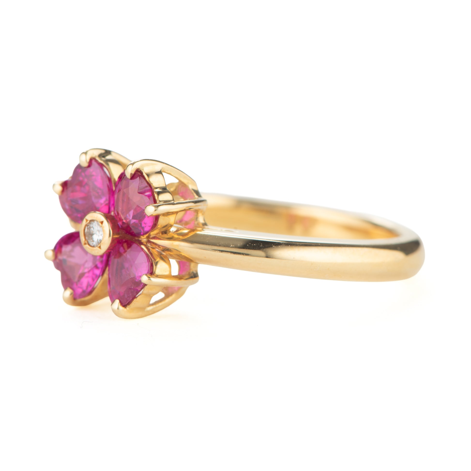 ルビーxダイヤモンド イエローゴールド製フラワーリング K18YG R:1.1ct D:0.01ct